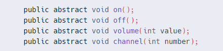 인터페이스에서 정의된 메소드는 모두 추상 메소드이다. 위에서 선언된 모든 메소드는 컴파일 시에 다음과 같이 자동으로 변경된다.