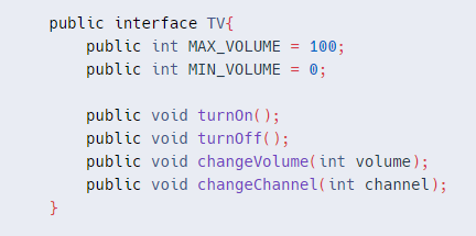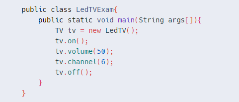 - 만약 TV인터페이스를 구현하는 LcdTV를 만들었다면 위의 코드에서 new LedTV부분만 new LcdTV로 변경해도 똑같이 프로그램이 동작할 것다. 동일한 인터페이스를 구현한다는 것은 클래스 사용법이 같다는 것을 의미한다.