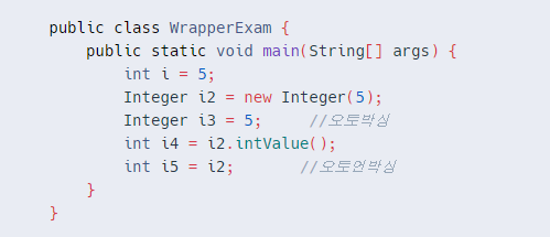 - Integer i3 = 5; 숫자 5는 원래 기본형이지만 자동으로 Integer형태로 변환된다.