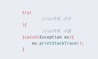 - java io객체는 인스턴스를 만들고, 모두 사용하면 close()메소드를 호출해야 한다.