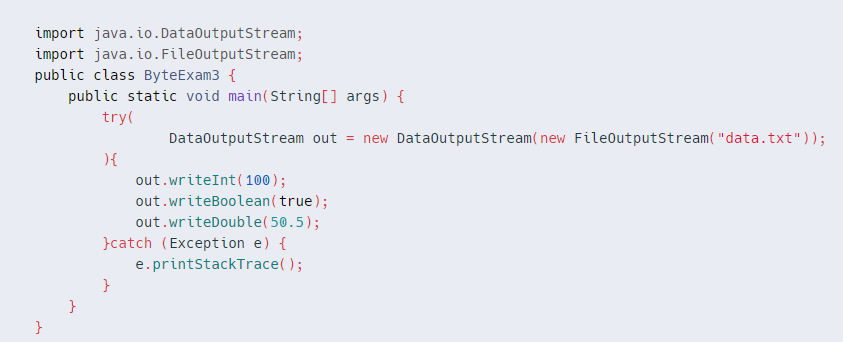 - 다양한 타입으로 저장 할 수 있는 DataOutputStream