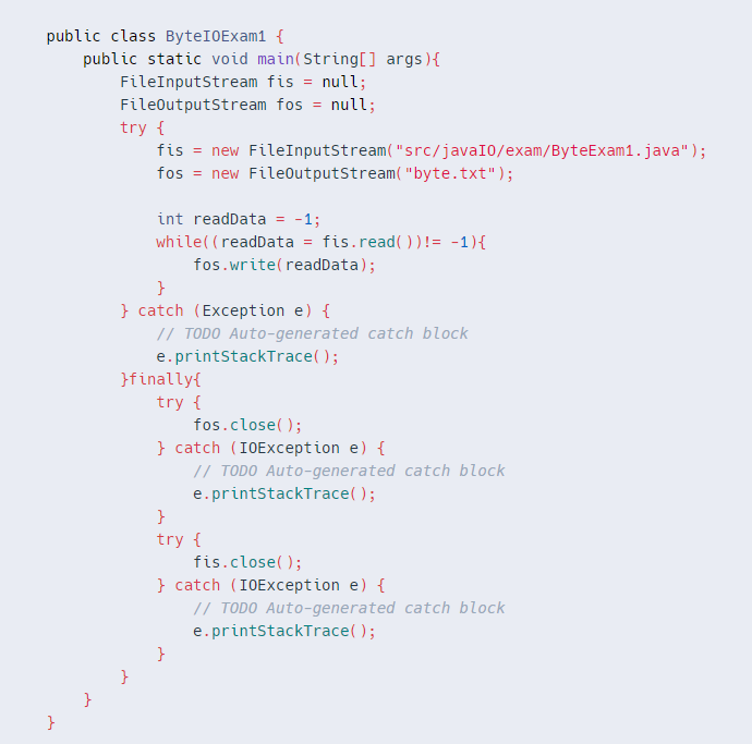 1) Char 단위 입출력(Console) char단위 입출력 클래스는 클래스 이름이 Reader나 Writer로 끝이 납니다. char단위 입출력 클래스를 이용해서 키보드로 부터 한줄 입력 받아서 콘솔에 출력 System.in - 키보드를 의미 (InputStream ) BufferedReader - 한줄씩 입력 받기위한 클래스 BufferedReader 클래스의 생성자는 InputStream을 입력받는 생성자가 없다. System.in은 InputStream 타입이므로 BufferedReader의 생성자에 바로 들어갈 수 없으므로 InputStreamReader 클래스를 이용해야함. 2) Char 단위 입출력(File) char단위 입출력 클래스는 클래스 이름이 Reader나 Writer로 끝이 납니..